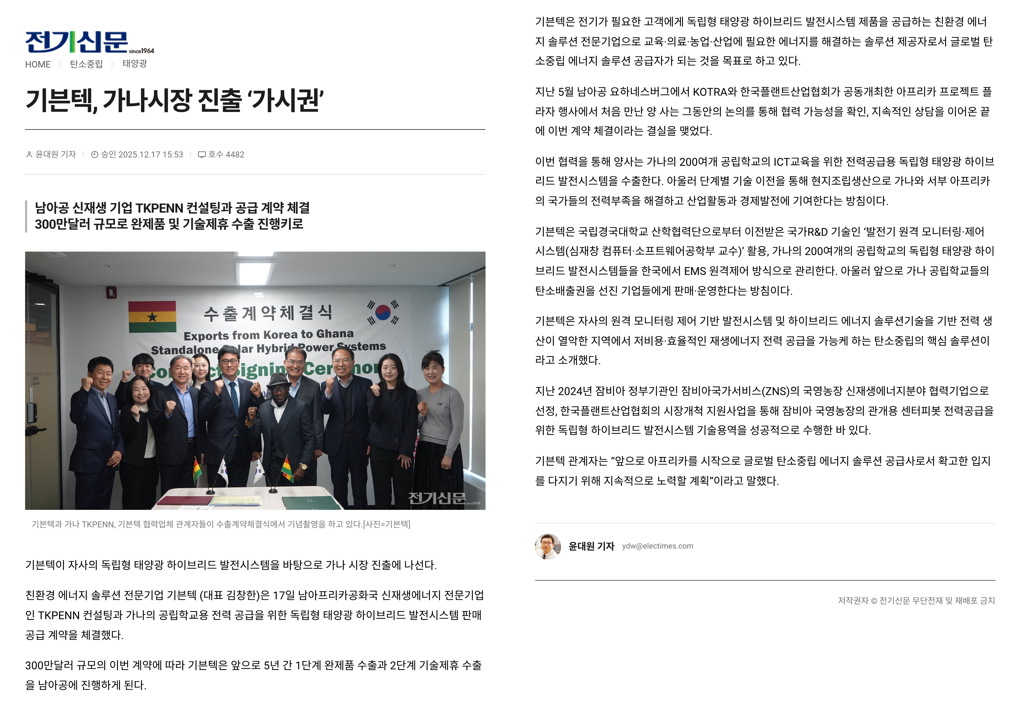 기븐텍 가나 수출 공급 계약 체결 완료